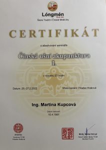 - Čínská ušní akupunkturu I. a II. Hradec Králové u Mudr. Michala Strnada