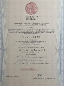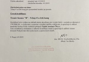 - Trenérská škola tchaj-ťi a čchi kung ve spolupráci s UK FTVS (Trenér licence B) 2017-2018